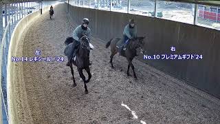 - 2025.12.15プレミアムギフト'24は、三石・ケイアイファーム在厩。ウォーキングマシン60分、トレッドミル・ダク500m→キャンター2000mもしくはウッドチップ坂路コース・キャンター1200m×1本(1ハロン20~25秒ペース)。11月下旬測定の馬体重は464kg。